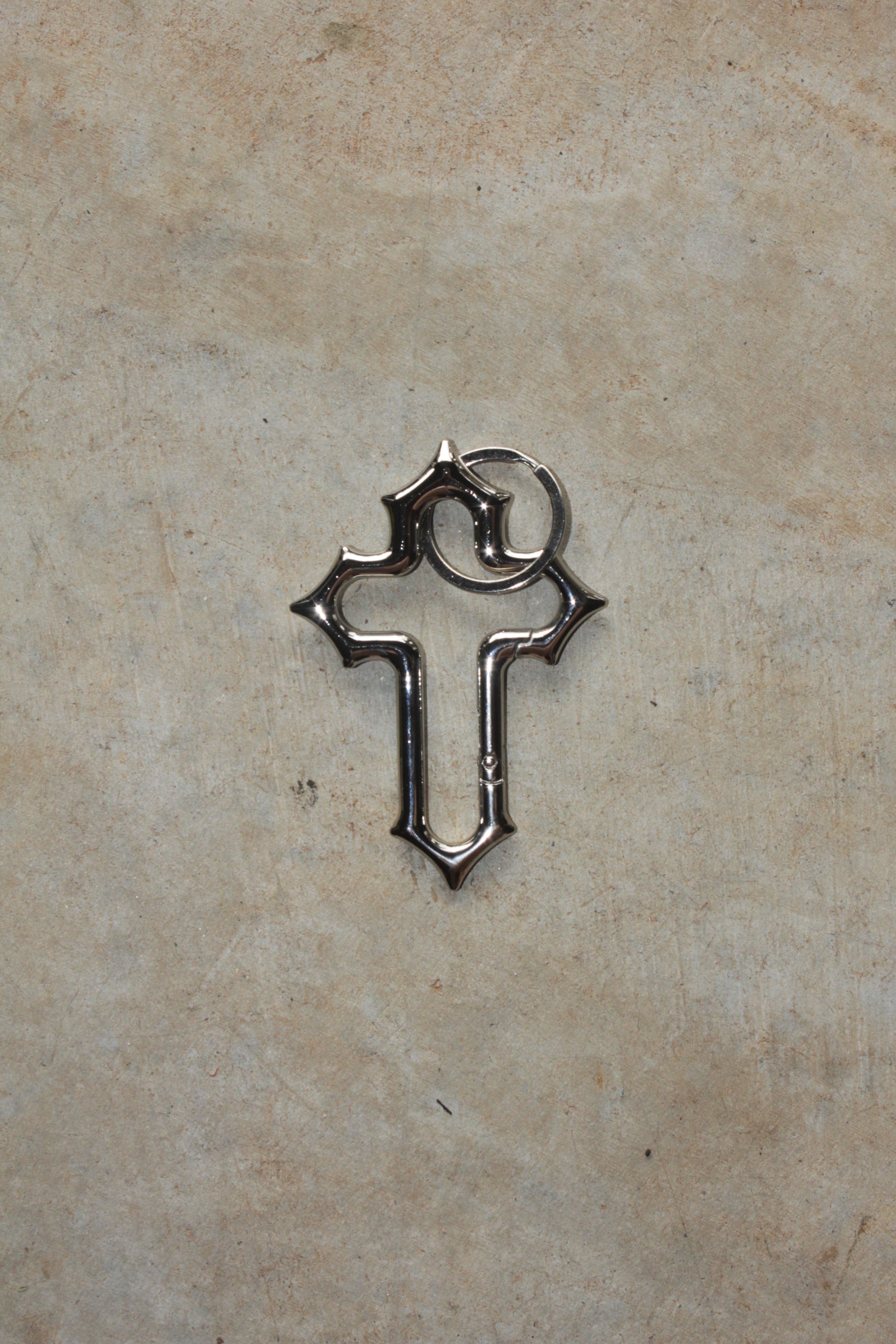 CRUX is a chrome cross-shaped carabiner built with clean edges and sharp intent. Whether it’s locking in keys or layered into a fit, it’s not just an accessory—it’s a statement of weight and belief. Features spring-gate locking clip.